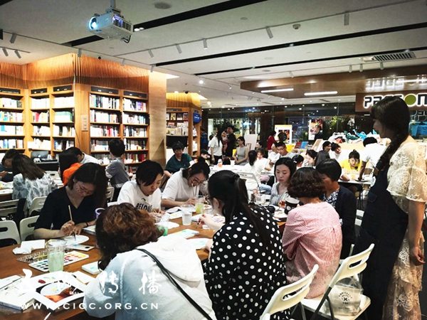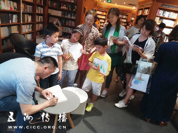 活动最后,水彩老师选出最精美的10幅团扇水彩,作者赠送了他们每人一枚亲手画的手签,并为参加活动的读者们签名,和他们拍照留影。