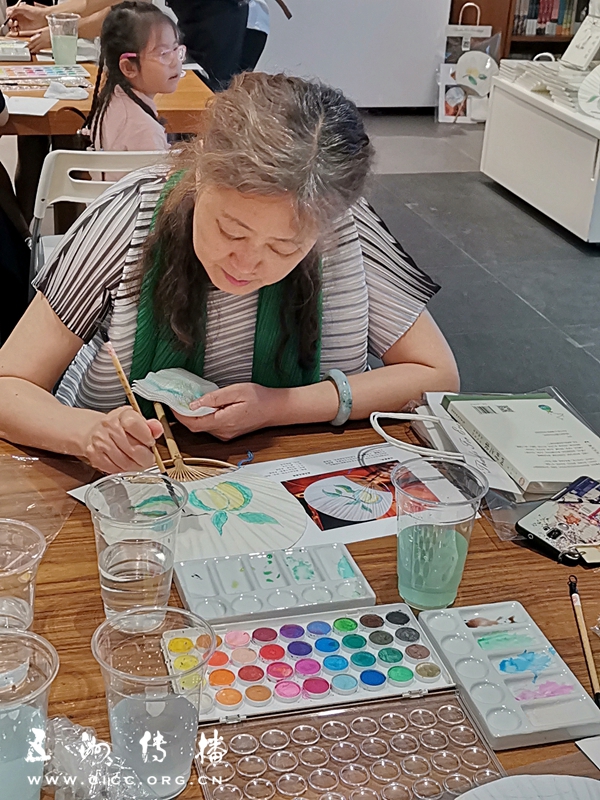 分享会后,我们选取了书中芒种时节的插画作为模板,教大家画团扇水彩,同时也和大家分享即将到来的芒种和端午的习俗,让大家在画画的同时,了解到作者创作的初衷,以及中国传统节气和节日的习俗,在趣味分享中体验中国传统民俗文化之美。