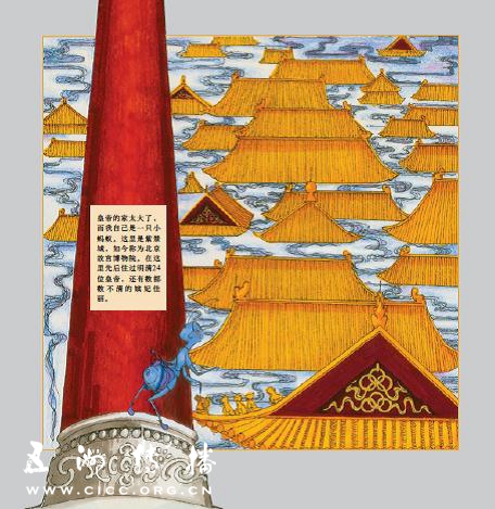 作者匠心独运,选择了一只小蚂蚁作为绘本主角,带领我们领略紫禁城里精妙绝伦的建筑和深厚的历史底蕴。一只小小的蚂蚁在72万平方米的范围里自由徜徉,以其独特的视角去观察这个壮观宏伟的古代宫殿建筑群,渺小与宏大形成了巨大的反差,从而引发了强烈的戏剧张力,也使绘本更生动活泼更有趣味性。