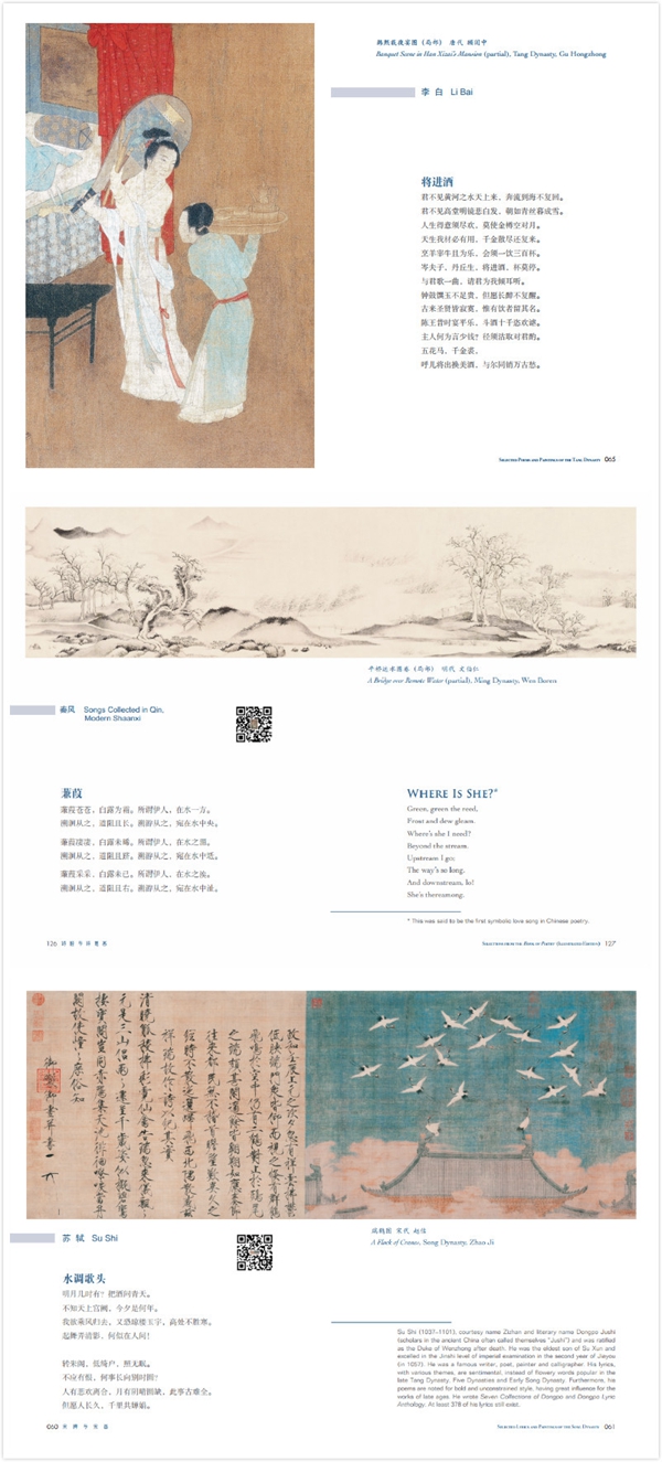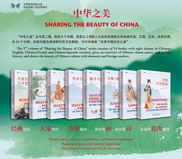 “中华之美”丛书是中华优秀传统文化传承发展工程支持项目,旨在推动中国优秀传统文化的国际传播,与中外读者共享中华之美。中国古典诗词是体现中华之美的典范,“中华之美”丛书选取自《诗经》以来的中国古典优秀韵文作品,配以与诗意相应的中国传统绘画,按时代分为8个专题,推出汉英、汉西、汉法对照三个文版,共24分册。丛书汇聚十几位中外翻译家的心血,荟萃多方面中国文化精粹,希望帮助更多外国朋友深入了解中华文化的内涵和底蕴,共享中华之美,并推动中华文化在全球范围内产生更加广泛、深刻和持续的影响。