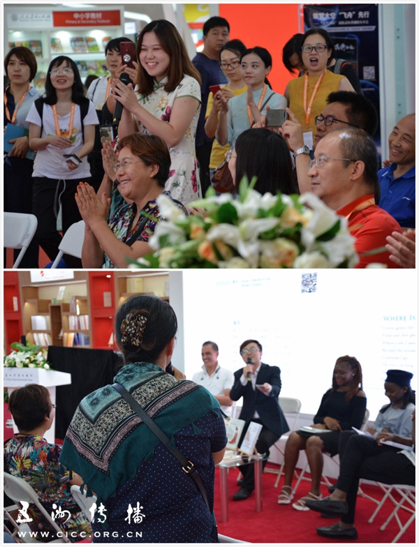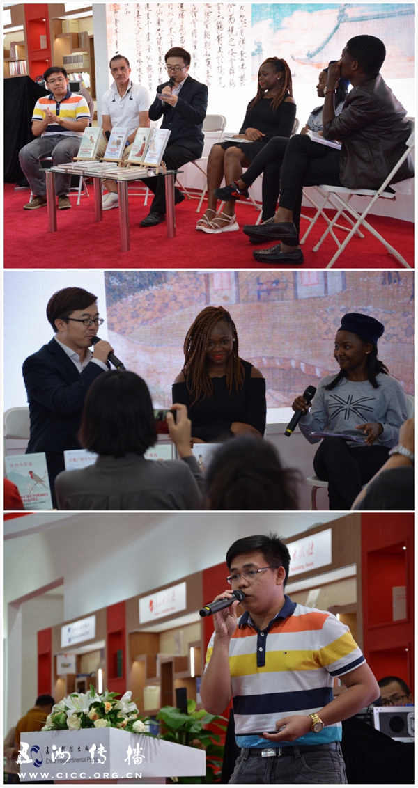 活动现场,分别来自加拿大、贝宁、菲律宾、肯尼亚的5位外国嘉宾与主持人、现场观众一起,分享了他们接触和学习中国文化尤其是中国诗歌的心得和体会。他们时而畅谈,时而朗诵,时而演唱,以多种语言、多种方式表达了对中国诗歌的喜爱和情感上的共鸣。来自贝宁的北京师范大学留学生艾力舍喜爱中国诗人李白,他激情澎湃的《将进酒》朗诵,使现场气氛达到高潮?;疃顺」菽谥诙喙壑谧ぷ愎劭?,还有现场观众即兴参与,这成为当日BIBF活动中的一个亮点。在这里,我们看到了世界不同文明的交流,看到了外国朋友学习中国文化的热情。