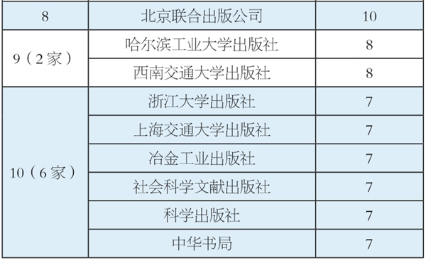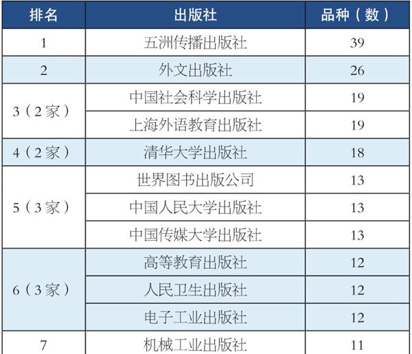 2019年度英文版图书入藏海外图书馆系统最多的中国大陆出版社TOP10(单位:种)