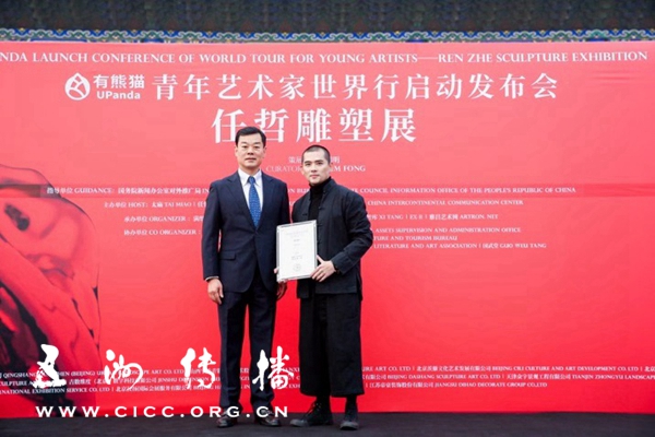 发布会上,首位响应“有熊猫”青年艺术家世界行的中国优秀青年雕塑家任哲被授予“有熊猫-艺术世界行”青年文化推广大使称号。他表示,将身负文化工作者的时代历史使命,代表新青年向世界传递中国艺术,推动中外文化的交流与沟通。