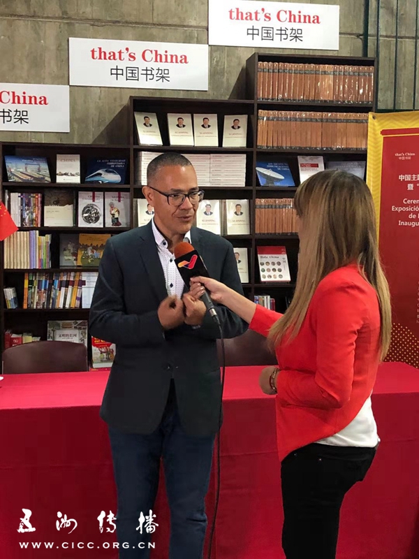 揭幕仪式后,委内瑞拉文化部长埃尔尼斯托·比列加斯先生接受当地媒体采访