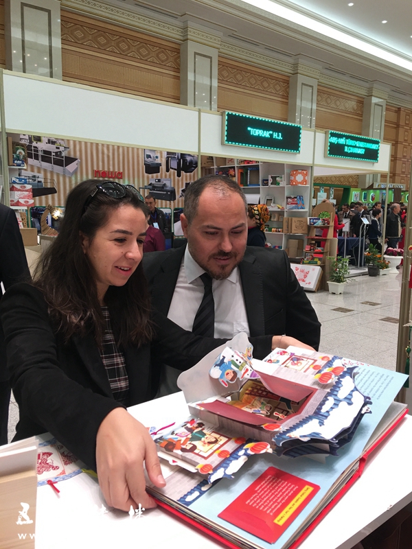 本届图书展销会由土库曼斯坦国家出版局和工商会联合举办,于11月5日至6日在土库曼斯坦首都阿什哈巴德举行。这是五洲社第二年参加土库曼斯坦国际图书展销会,五洲社社携80余种俄文及英文图书参展,包括当代中国系列、中国文化系列、中华之美系列、全球治理的中国方案系列、新时代的中国人系列、创新中国系列等图书及文创产品,其中我社最新出版的立体书《欢乐中国年》尤其受当地读者欢迎,成为了书展上的“明星”,路过的读者们纷纷都被其精巧的工艺和有趣的内容吸引。