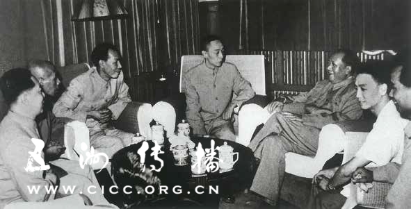 1959 年,毛泽东主席接见张君秋(左一)等京剧艺术家