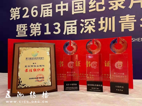 由五洲传播中心与美国国家地理合办的《华彩中国》栏目荣获纪录片学术盛典“十佳栏目”,与美国Discovery探索频道合办的《神奇的中国》栏目荣获“好栏目”。由五洲传播中心制作的合拍片《世界上最大的生日庆典》获得“长片十佳作品”,合拍片《畅想中国》获得“最佳国际传播作品”。同时,五洲传播出版社(五洲传播中心)荣获深圳青年影像节最佳组织奖。