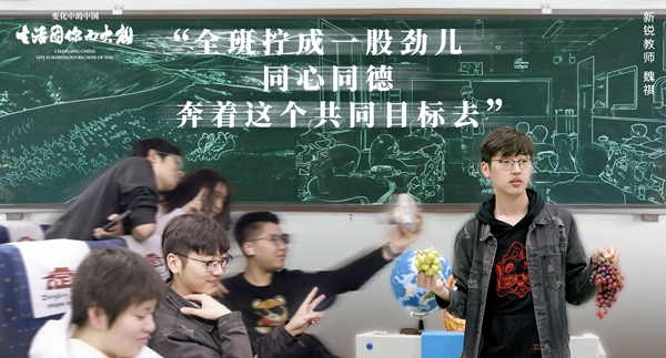 活力是青春中国的第一个关键词。片中的活力担当是90后老师魏淇。身为历史教师,他没有人们印象中的刻板与严厉。相反,他对学生亲切随和,教学灵活多样,师生相处如朋友。为讲好一个知识点,他把菜蓝子提进了课堂,还与学生一起分享食物。为让学生在实践中学习,他在高考前带着学生走上了长途考察之路。在魏淇与学生亲切自然、轻松愉快相处中,人们看到了新一代中国教师的活力。