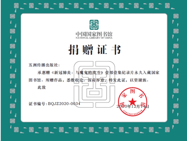 《新冠肺炎:与魔鬼的战斗》通过本次活动还入选中国战“疫”记忆库项目,被国家图书馆永久收藏,将会永久保存于国家图书馆和国家文献战略储备库,供国家图书馆展览、放映,并提供给广大读者阅读观看。