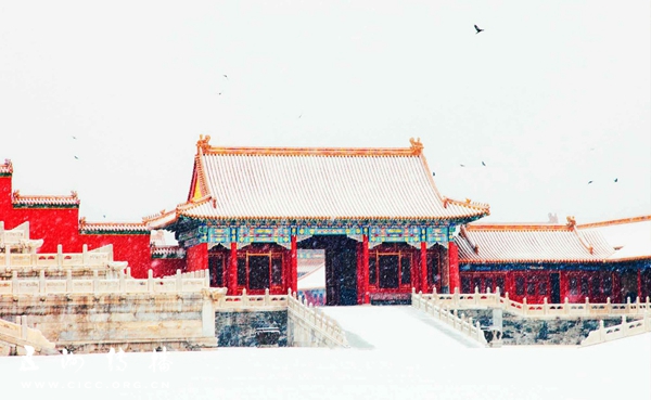 The Forbidden City is dressed in a white coat of snow, looking more imposing and elegant.
