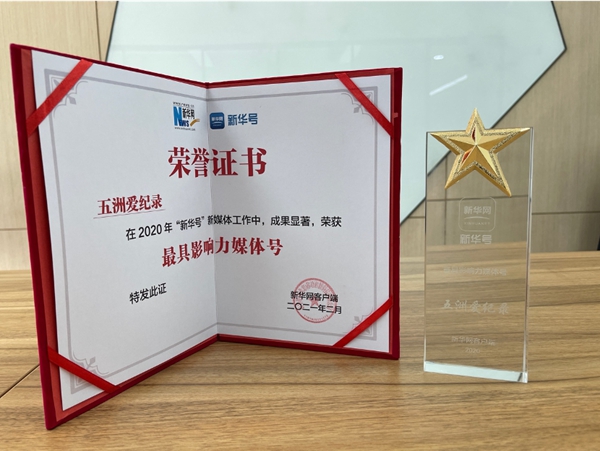 近日,新华网新华号正式发布2020年度最具影响力榜单,“五洲爱纪录”荣获新华号“最具影响力媒体号”称号。