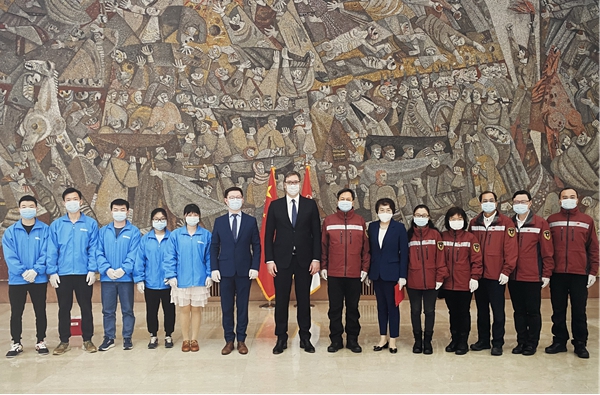 图为援塞“火眼”实验室团队受到塞尔维亚总统武契奇接见。