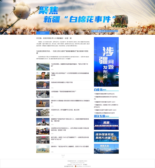 聚焦新疆“白棉花事件” 中国新疆网发布专题揭露美西方涉疆谎言