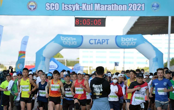 当地时间5月15日8时,由上合组织秘书处、云南上合文化体育有限公司、五洲文化交流有限公司等联合主办的“2021年上合伊塞克湖马拉松赛”在伊塞克湖州乔尔蓬—阿塔体育场举行。随着吉尔吉斯斯坦总统萨德尔·扎帕罗夫一声令下,来自全世界30个国家和地区的2500余名选手从这里欢乐开跑。