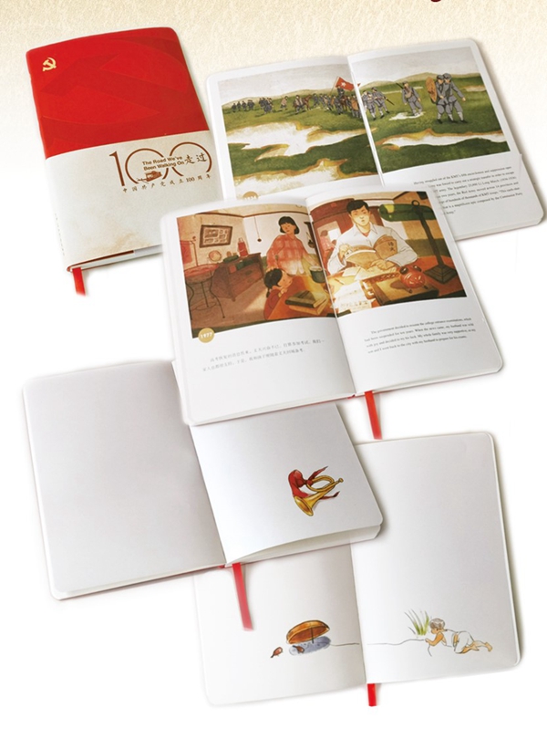 近日,五洲传播出版社设计并发布了庆祝建党百年《走过》系列文创产品,包括插画手账、“足迹”系列书签、纪念帆布袋、纪念杯等富有创意、特色鲜明的出版物。