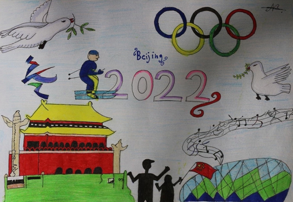 1月28日,“2022-放飞冬奥梦想”上海合作组织国家青少年主题画展及中俄儿童画展线上开展。本次画展由上海合作组织睦邻友好合作委员会与全国妇联、教育部、中央美术学院、上合组织秘书处、乌兹别克斯坦上合组织民间外交中心、北京俄罗斯文化中心等机构联合举办,聚焦北京冬奥主题,倡导上合组织国家青少年相知相亲,征集中外青少年画作1200余幅,中方主办机构网站将分批展出。上合组织秘书长张明、上合组织睦邻友好合作委员会副主席崔丽发来书面致辞。五洲传播中心作为宣传推广单位参加了本次活动。下面是部分入选作品: