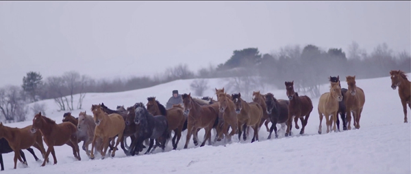 作为一部集锦式的纪录电影,《家园梦想》创造性地采用了“3+3+3+1”的结构方式。前三个段落分别有三个小故事,交叉讲述,最后一个段落以嫦娥飞天的故事引入高潮、升华主题。这样的结构之下,不断变化的场景和人物,展现了中国大地正在发生的多样多元的追梦故事,让人充满了无限的希望。以第一个段落为例,故事的开头,牧民希吉热正驰马奔跑在无尽的雪原上,大熊猫饲养员杨长江正无奈看着小熊猫卖萌,养蜂人殷平伟夫妻俩则在阴雨天气望花兴叹,随后镜头又切回到草原之上,如此往复,局部交叉递进式地讲完了希吉热参加赛马比赛、杨长江放归大熊猫、养蜂人收获蜂蜜的故事。