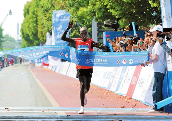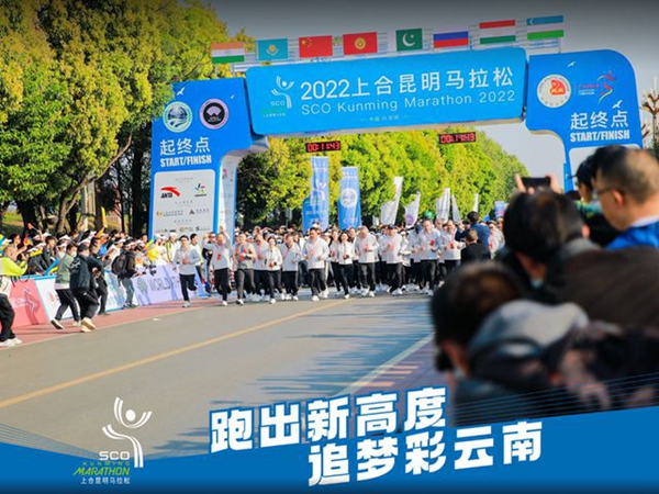 2022上合昆明马拉松赛于3月26日在春城昆明举行,吸引了来自18个国家和地区的上万名选手参与其中。此次赛事共设全程马拉松、半程马拉松、上合跑、上合亲子跑四个组别,经过激烈角逐,来自肯尼亚的切鲁伊约特以2小时16分58秒的成绩夺得全程马拉松男子组冠军,中国选手贺应兵1小时8分35秒的成绩获得半程马拉松男子组冠军。埃塞俄比亚选手舒尔以2小时34分49秒的成绩获得全程马拉松女子组冠军,中国选手罗霞以1小时17分42秒的成绩获得半程马拉松女子组冠军。