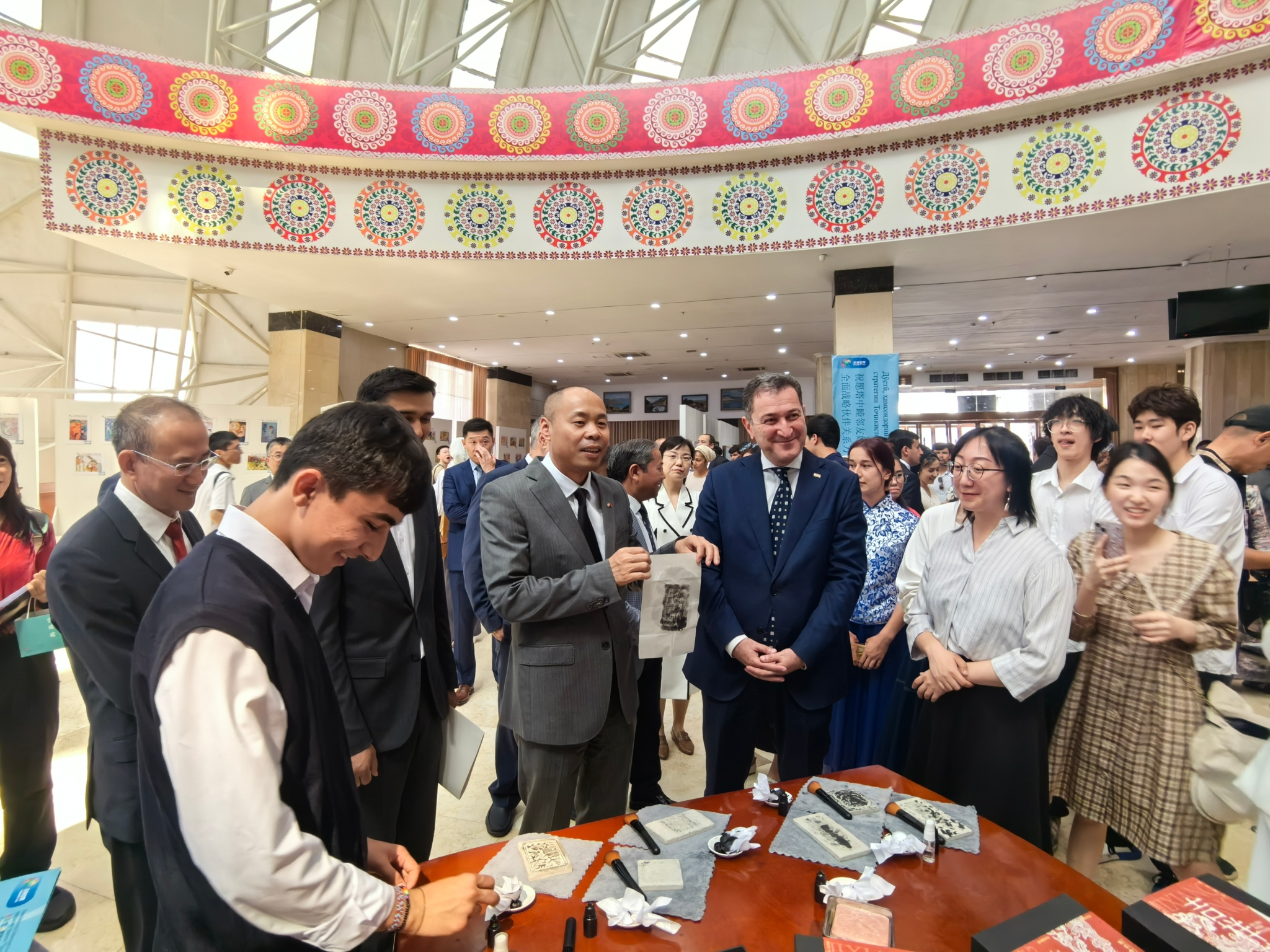 当地时间6月27日下午,2024“未来世界”国际青少年艺术展演在塔吉克斯坦杜尚别塔吉克斯坦国家博物馆盛大开幕。本次展演由塔吉克斯坦共和国政府青年和体育事务委员会、中华人民共和国国务院新闻办公室五洲传播中心、塔吉克斯坦共和国外交部直属媒体中心共同主办,云南上合文化体育有限公司、上海艺博会国际展览有限公司、“未来世界”国际青少年艺术展演组委会承办,塔吉克斯坦共和国驻华大使馆、中华人民共和国驻塔吉克斯坦共和国大使馆、联合国教科文组织直属协会支持,旨在搭建上海合作组织各成员国青少年交流交往、相知相亲的桥梁,鼓励各国青少年在了解文化多样性的同时更多了解中国,助力全球青少年通过艺术创作增进对话、加深理解。