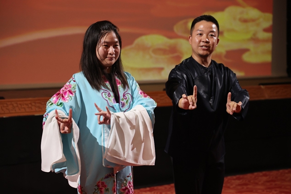 为了让留学生们更深入地体验京剧文化的魅力,分享会特别设置了京剧互动体验环节,寓教于乐。在专业老师的指导下,留学生们兴致勃勃地尝试穿戴京剧服饰,学习基础唱腔和身段表演,并在舞台上以游戏形式理解京剧动作,在中秋佳节的浪漫氛围下演绎才子佳人月下初遇的情景故事,感受中国传统艺术的博大精深。