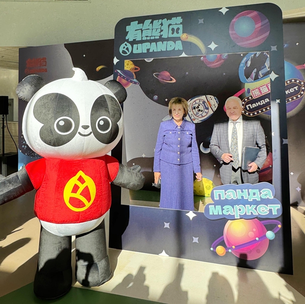 杰尼索夫副主席、斯卡科夫斯卡娅副主席与熊猫“阿璞”合影打卡