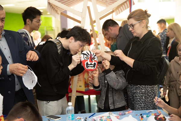 中俄青少年在“熊猫市集”体验脸谱绘画