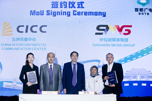 12月5日,由北京市广播电视局主办的“北京大视听之夜暨北京-吉隆坡新视听交流会”在马来西亚吉隆坡举办。在中国驻马来西亚大使馆公使衔参赞陈友良,北京市广播电视局总工程师、二级巡视员秦旭东,砂拉越媒体集团董事长拿督诺雅蒂·莫哈末·依斯迈的共同见证下,五洲传播中心与砂拉越媒体集团就“北京大视听”内容制作和展播展映有关内容签署合作备忘录。双方将加强影视作品合作拍摄,助推更多北京优秀影视内容落地。后续《中国之新》《丝路美食之探寻米踪》《智慧中国:众创时代之科技新北京》《游走中国—千年跨越》等一批精彩影视作品将“京”彩亮相马来西亚。