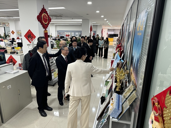 澳门特区来访一行观看了五洲综合展览、业务平台和影视集锦,并进行现场互动交流。