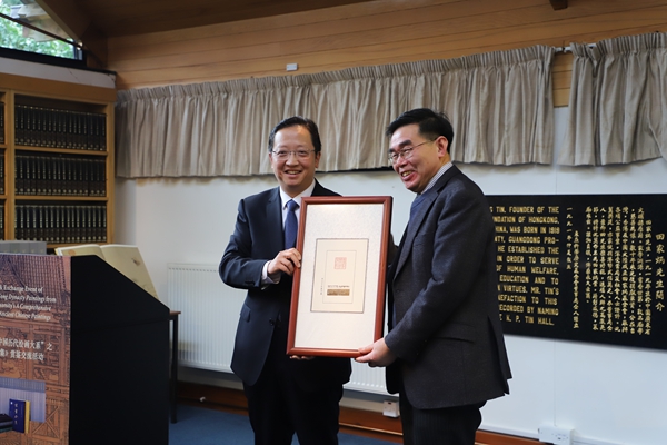 浙江省政府新闻办公室主任虞汉胤为剑桥大学赠礼