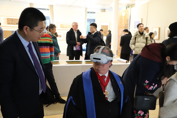 在展览开幕式上,中英嘉宾齐聚一堂,大家参观了“中国历代绘画大系”宋画特展,感受了浙江非遗、国潮文创与数智科技的魅力。剑桥大学相关机构负责人对中方的慷慨捐赠表达了诚挚感谢,表示《宋画全集》的到来,为剑桥大学的学术研究和文化交流注入了新的活力,提供了珍贵的研究资源。这将有助于拓宽师生们的艺术视野,促进不同文化间的相互理解与欣赏,进一步推动中英在文化领域的深度合作。
