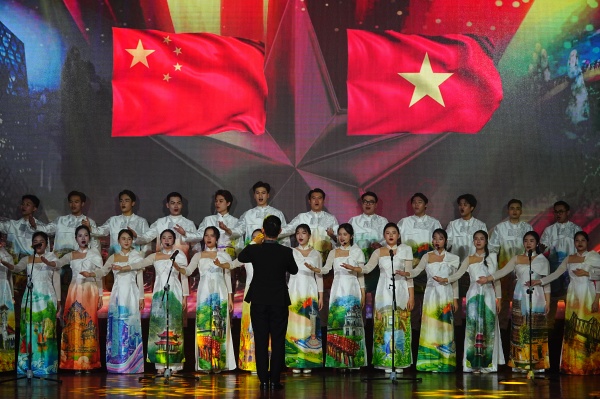 活动现场,中越双方的艺术院校联袂带来了精彩的文艺演出。由广西艺术学院与越南军队文化艺术大学共同带来的歌舞《你来我往有情缘》得到了全场热烈的掌声。越南歌手陈氏碧玉与广西艺术学院演员仵威用中越双语演唱,越南编导武明英编排了融合中越民族特色的舞蹈,体现了中越青年互学互鉴的友谊。