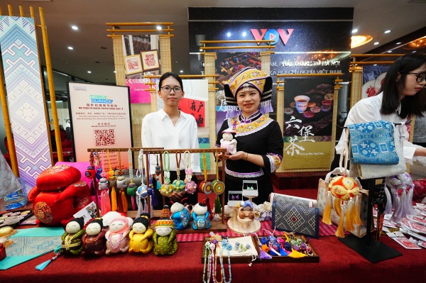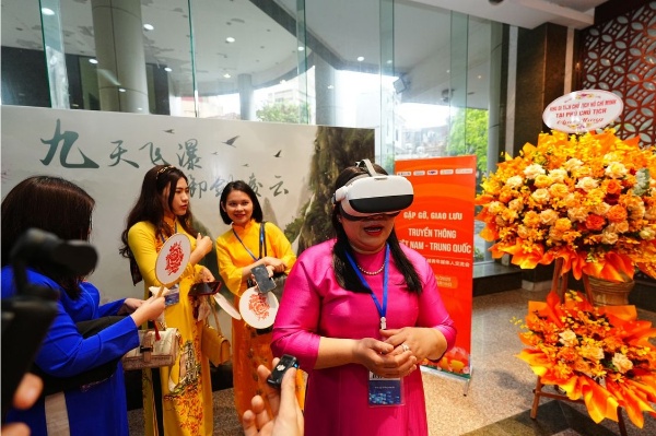 主办方在越南河内主会场精心设置了文化互动体验区,让现场嘉宾沉浸式体验两国丰富多彩的非遗文化和AI技术的应用成果。