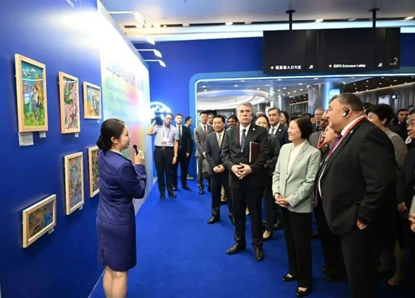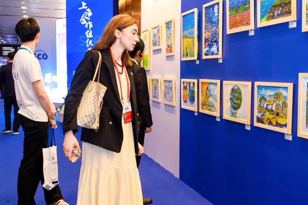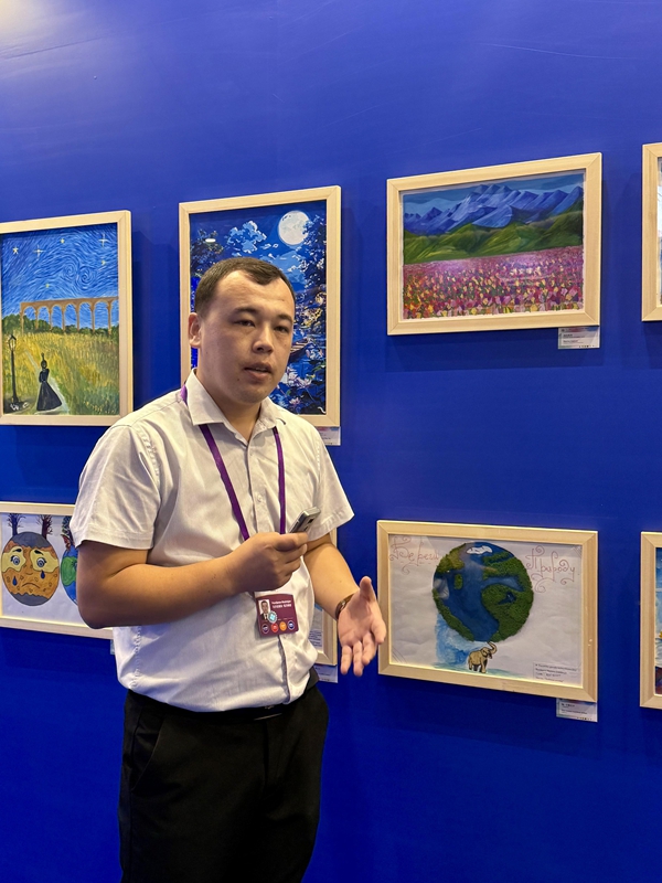 作为中国担任上合组织轮值主席国重要人文交流活动,本次画展紧扣2025年上合组织可持续发展年主题,共展出13个上合组织国家儿童的百余幅美术作品?;魑贫嗖饰幕⑽蠢纯萍?、欢庆丰收、绿色环保、美丽地球、珍爱和平6个主题,跨越语言和国界,构成了一幅绚丽多彩的上合组织人文画卷,充分展现了上合组织各国地域文化特色、儿童独特的艺术视角以及对“和平”、“发展”、“环保”等问题的思考。