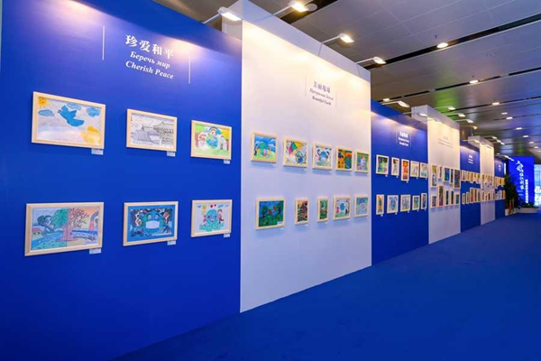 今年是中国人民抗日战争暨世界反法西斯战争胜利80周年。本次画展专门设置珍爱和平版块,来自上合组织国家的儿童纷纷用和平鸽、橄榄枝绘就了对和平、友好的向往和期待,为推动构建人类命运共同体贡献青春力量。