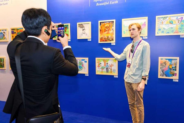 辽宁大学在读研究生赵宇璇和苏琦月是此次活动的志愿者,她们表示,很高兴能参与到这次活动中来,从缤纷的画作中可以感受到各国青少年的创造力、对于不同议题的多样想法,以及对于彼此间友好交流的向往。