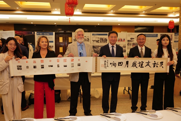 嘉宾现场展示长卷《共话友谊 岁月回响》