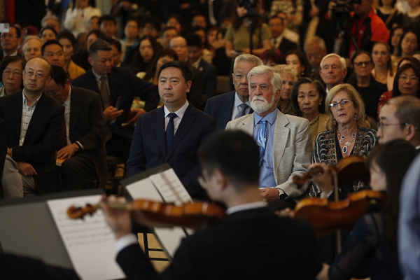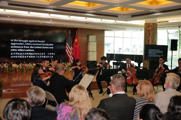 8月29日,由中国国务院新闻办公室、中国驻美国大使馆、中国驻纽约总领事馆联合主办,五洲传播中心、美中航空遗产基金会承办的“感知中国—中美民间友好交响音乐故事会”,在中国驻纽约总领事馆成功举行。作为8月27日华盛顿中国驻美大使馆活动的延续,本场活动围绕“纪念中国人民抗日战争暨世界反法西斯战争胜利80周年”主题,创新融合“交响音乐+沉浸式故事讲述+图文影像展示”形式,吸引领区各界近200位嘉宾参与,共同重温中美军民并肩抗击日本法西斯的峥嵘岁月,为深化两国民间友好搭建跨越时空的情感桥梁。