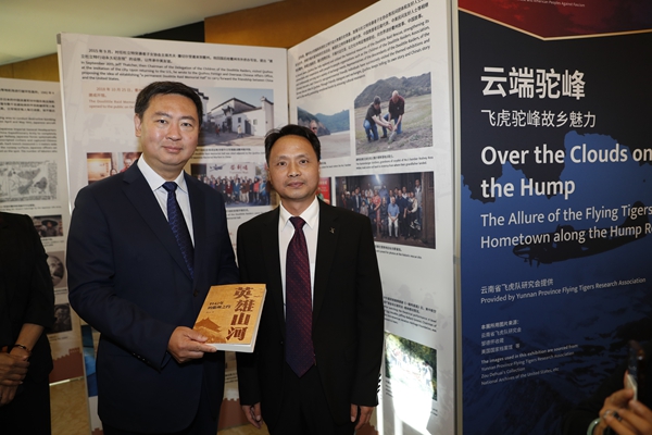 美中航空遗产基金会常务理事古德里奇现场讲述其父亲驾驶飞虎战机88次飞越“驼峰航线”的传奇故事。他说,我的父亲已经101岁高龄,我们都希望通过美中各界共同努力,让飞虎精神薪火相传,让美中民间友谊赓续绵延。
