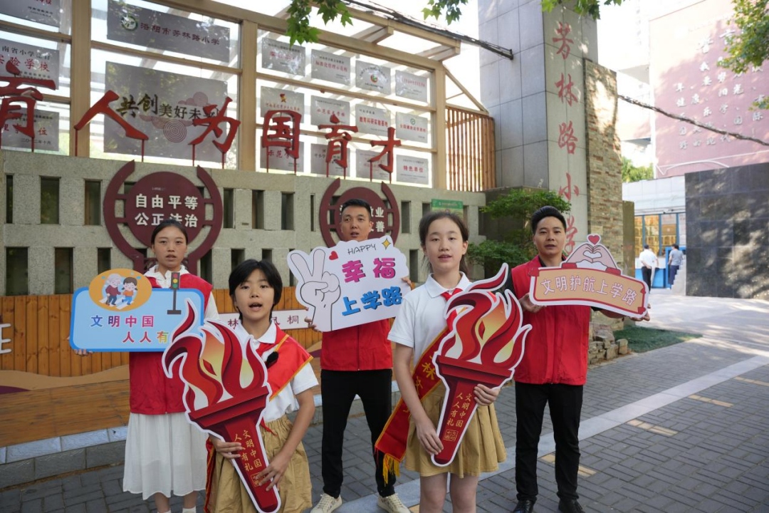 近日,河南省洛阳市积极开展“幸福上学路”文明护航行动,营造安全、有序、畅通、文明的校园周边环境。
