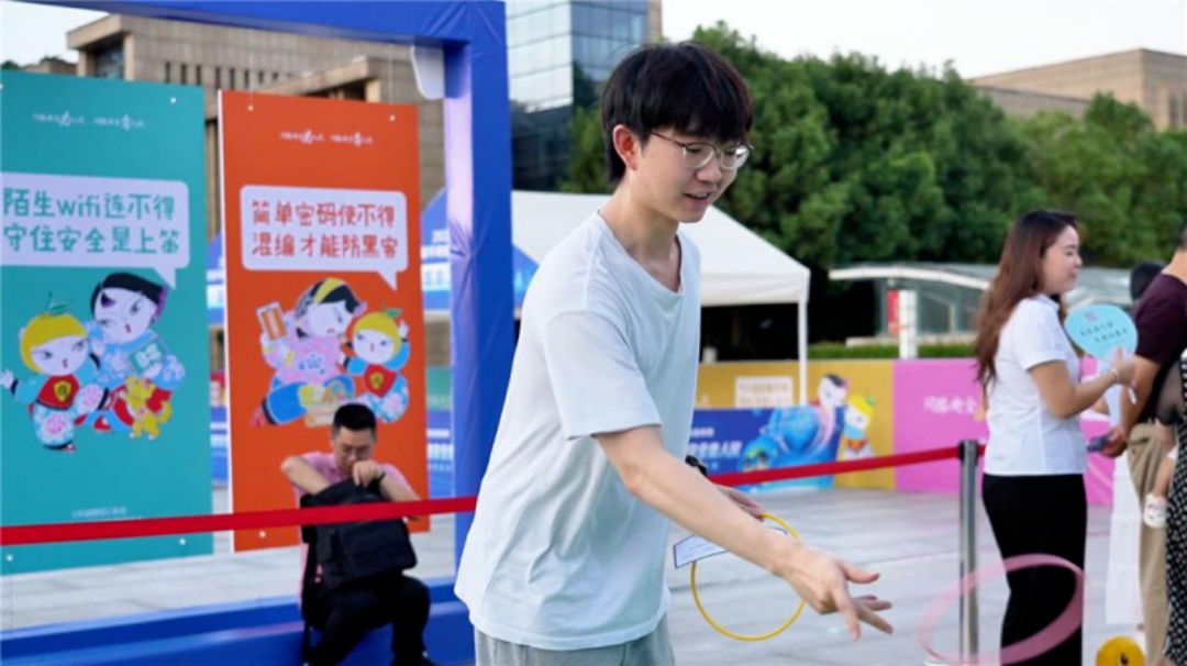 活动现场规划精巧,设置了舞台区、网络安全知识区、游园竞猜区、机关单位宣传展示区、拍照打卡区五大功能区。最热闹的当属游园竞猜区,“圈住风险,守护安全”“火眼金睛辨真伪”等5个互动游戏前人头攒动,参与者手持集章卡闯关集章,在轻松愉快的氛围中学习网络安全知识。