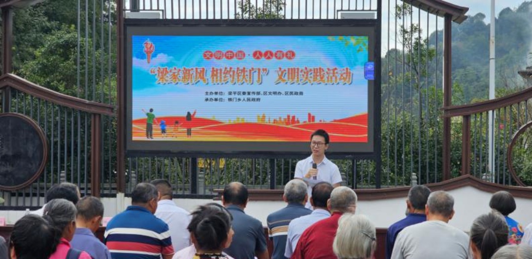 此外,梁平区还围绕文明乡风开展了“梁家新风·相约铁门”文明实践活动。通过宣讲、短视频、发放宣传单及有奖问答等形式,把实用知识与文明理念送到群众身边,为“新和富美”梁平注入文明动能。