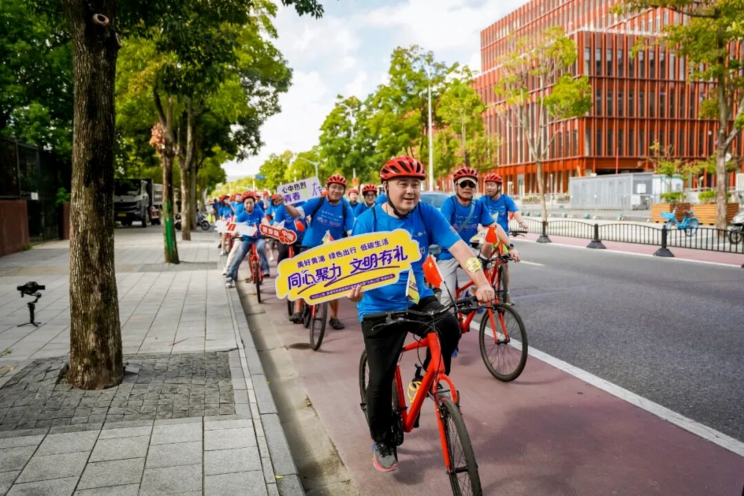 各骑行队伍途经滨江历史建筑群、世博会博物馆、当代艺术博物等标志性景观,全程约12公里。骑友们在运动中感受城市人文与自然风光的交融,用实际行动传递低碳出行、文明同行的理念。