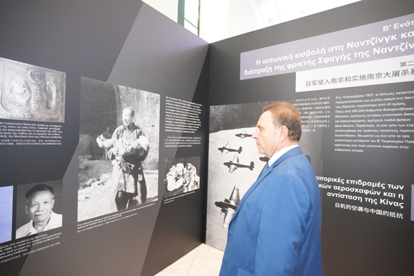 中国驻希腊大使方遒在致辞中表示:“此次展览不仅是南京与雅典两座城市的交流互动,更是中希两大古老文明跨越山海的深情对话。我们愿同希方一道,坚持弘扬正确二战史观,坚定维护二战胜利成果,让推进全球治理体系变革、推动构建人类命运共同体的成果,更多更好造福全人类。”