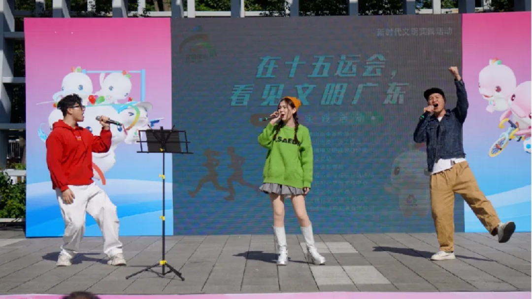 本土音乐人演唱十五运会会歌《气势如虹》,点燃全场气氛。佛山市文明办供图