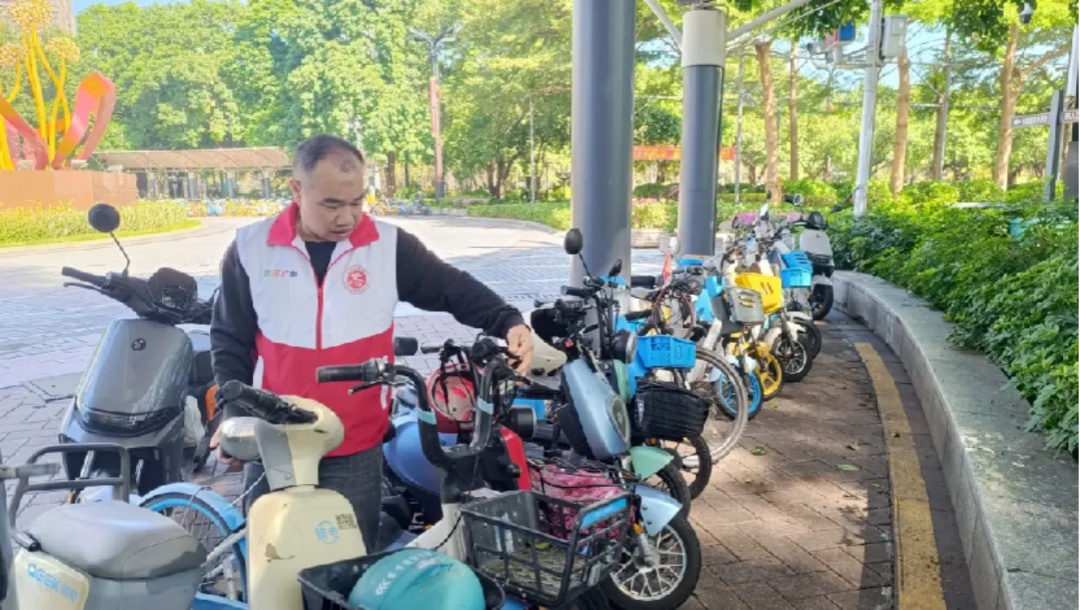 志愿者走上街头规范电动自行车停放。佛山市文明办供图