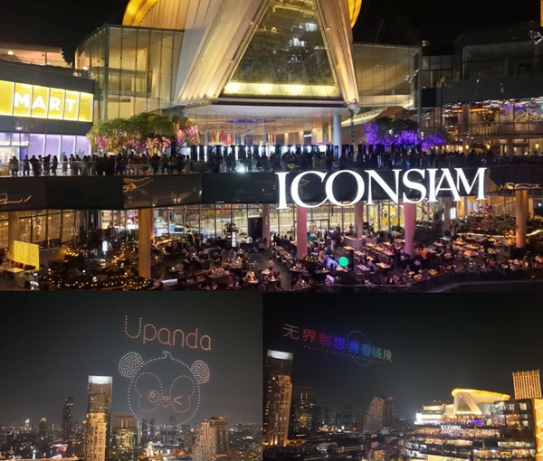 “中泰一家亲”无人机秀于16日晚在曼谷地标建筑暹罗广场举办,通过千架无人机组成中国天坛、泰国黎明寺、京剧脸谱、孔剧面具等中泰经典文化符号,运用创新科技传递文化之美。当晚客流量达1.5万人次,现场观看此次表演。