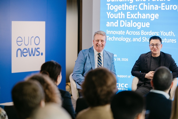 28日,“共创未来·中欧青年对话交流活动”于欧洲新闻台总部所在地比利时布鲁塞尔举办。